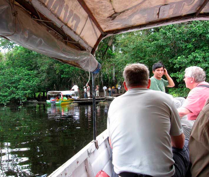 - Excursão a pé ou de canoa à comunidade da etnia Yagua, situada no Novo Peru (Nuevo Perú), para apreciar os seus costumes ancestrais, a sua original vestimenta de fibras de palmeira e inclusive, para que Você possa provar a sua precisão em apontar com a “phucuna” (zarabatana) que os Yaguas têm utilizado para a caça, durante séculos