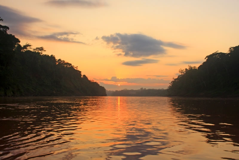 - Às 6 horas da manhã, abordamos a embarcação, para navegar corrente abaixo, pelo Rio Tambopata, com transferência ao rio Madre de Dios